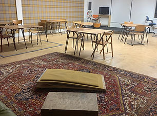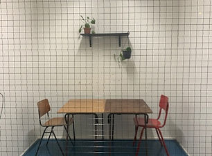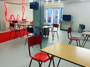 Used to be a school for practice education, recently turned into a temporary coworking club. Flex spaces, huge living room like club, two meeting spaces and a photo studio with limbo wall. Urban vibes all around as we are hosting an urban mobility startup, and a creative agency rooted in hip hop.